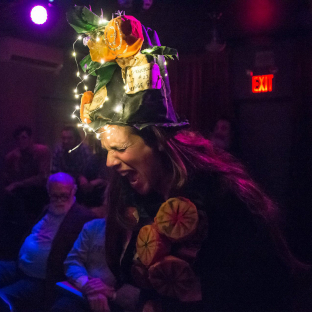 Jenny Romaine (director, designer, puppeteer) is co-founder of the visual theater collective Great Small Works. She is music director of Jennifer Miller’s CIRCUS AMOK and was a sound archivist at the YIVO Institute for Jewish Research for 13 years. For several decades she has drawn on Yiddish/Pan Jewish primary source materials to create art that has contemporary meaning. She directs community based spectacles in New York City and around the world. Her projects include the Sukkos Mob (featured in the film Punk Jews), Purim Shpiln with the Aftselakhis Spectacle Committee, The Revival of the Uzda Gravediggers, and Muntergang and Other Cheerful Downfalls with Great Small Works. Romaine works as an educator in prisons, public schools and museums. She’s currently a Visiting Professor at the Pratt Institute. She was the first recipient of the Adrienne Cooper Award for Dreaming in Yiddish (2014), received a Marshall Meyer Risk-Taker Award from Jews for Racial and Economic Justice (2015) and is featured in Dazzle Camouflage: Spectacular Theatrical Strategies for Resistance and Resilience by Ezra Berkley Nepon.