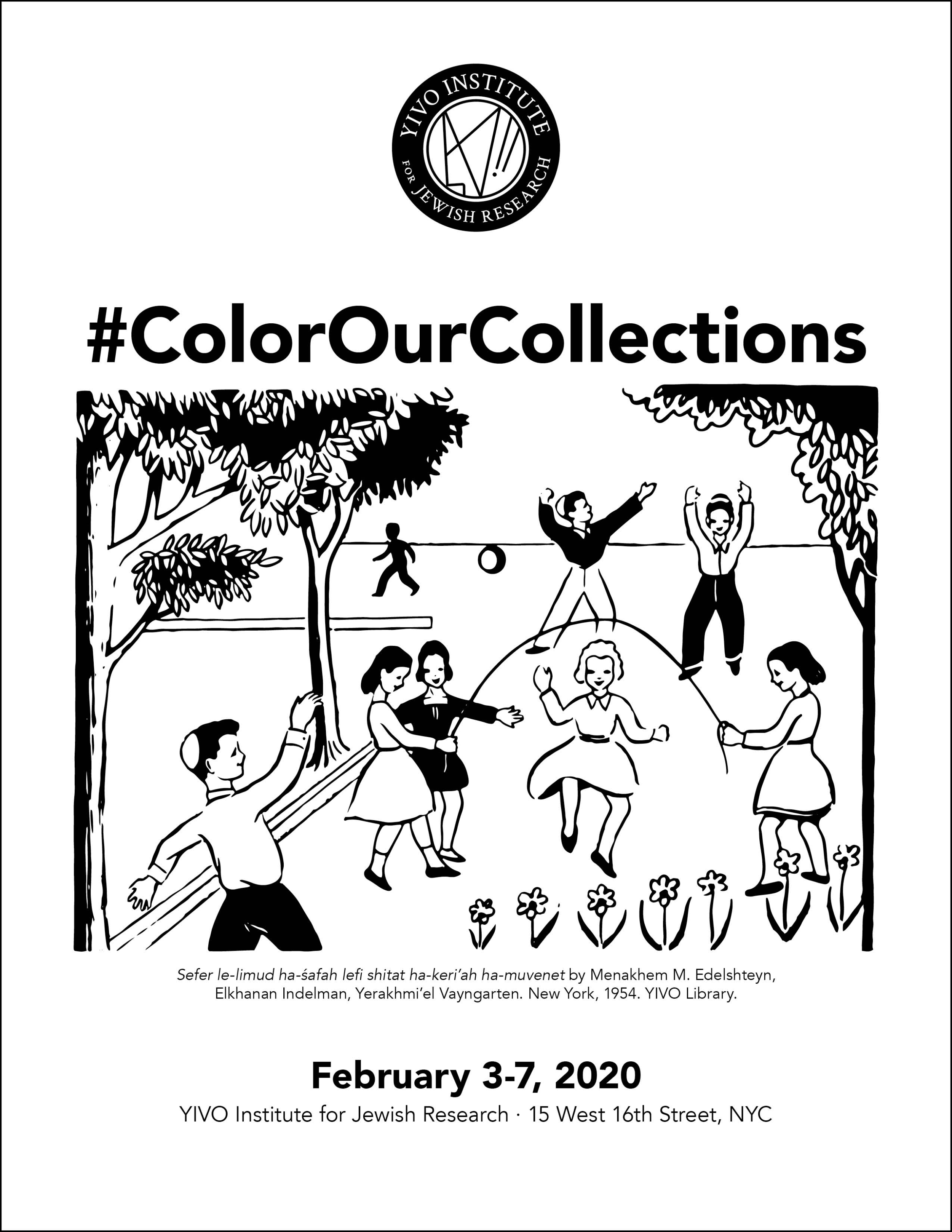 YIVO once again participated in #ColorOurCollections, a week-long coloring fest on social media, that took place February 3-7, 2020. #ColorOurCollections is organized by libraries, archives, and other cultural institutions around the world. Organizations use materials from their collections to share free coloring content to help people explore, color, and connect with their collections.