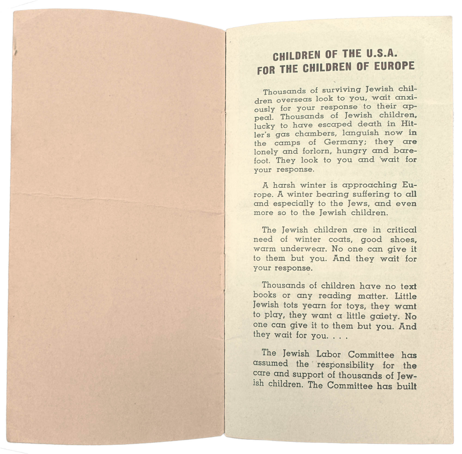 A Jewish Labor Committee Appeal Booklet to Support the Jewish Children Who Survived the Holocaust