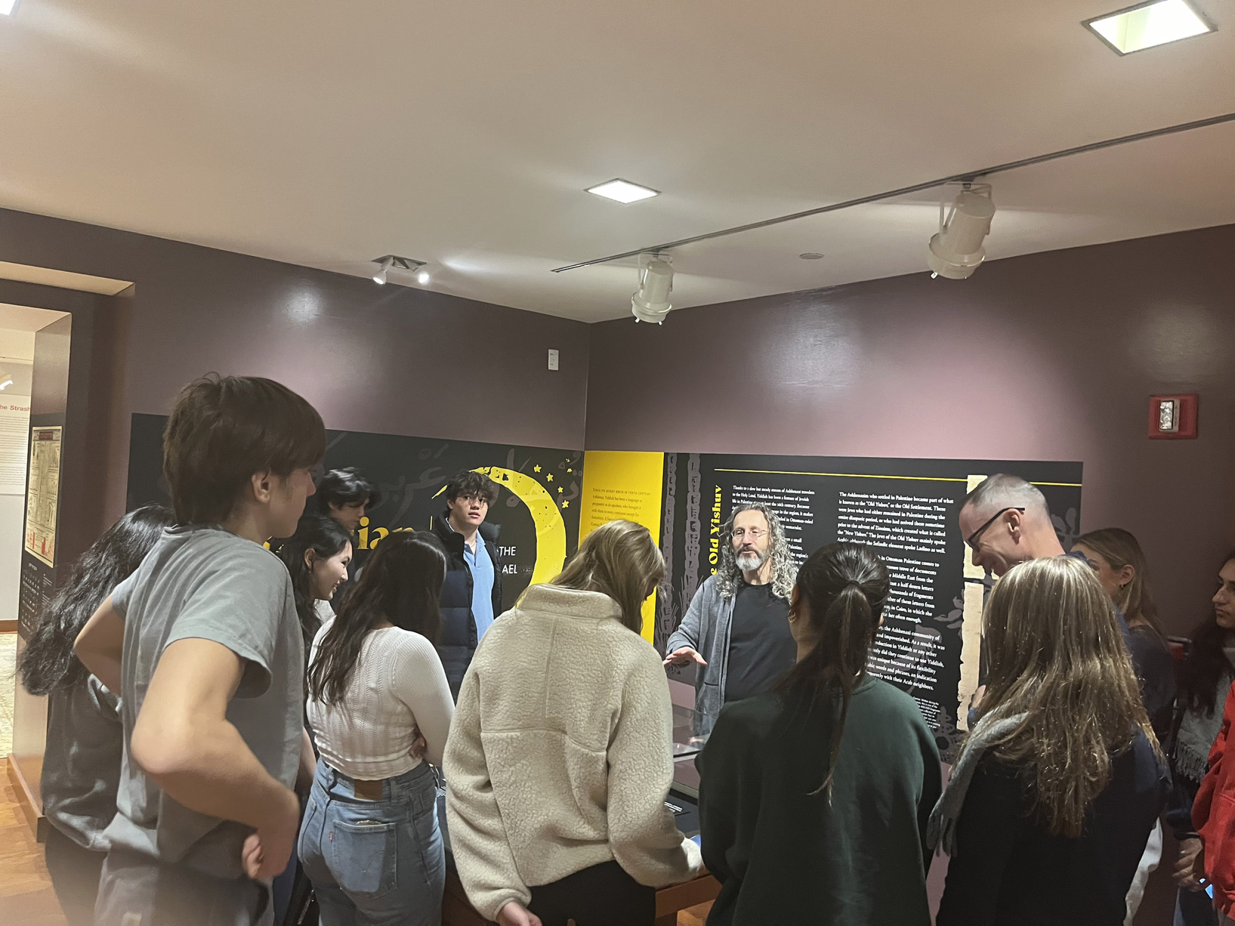 On November 2, five students from The Dalton School came for a special lesson that incorporated a lecture on YIVO’s history and an abbreviated version of the YIVO Youth Autobiography Contest Lesson, as well as a tour of the archives led by Stefanie Halpern, Director of the YIVO Archives, and a tour of YIVO’s Palestinian Yiddish exhibition given by Eddy Portnoy, YIVO’s Senior Academic Advisor & Director of Exhibitions. Due to the success of the visit, a second visit from The Dalton School was planned, and thirty-two students from Dalton’s Modern Middle East and Food History courses visited. To accommodate the larger size, students were split into groups, alternating between tours of the Palestinian Yiddish exhibit—again given by Portnoy—and a curated selection of Jewish food materials chosen by Trubman and Landau-Pincus.